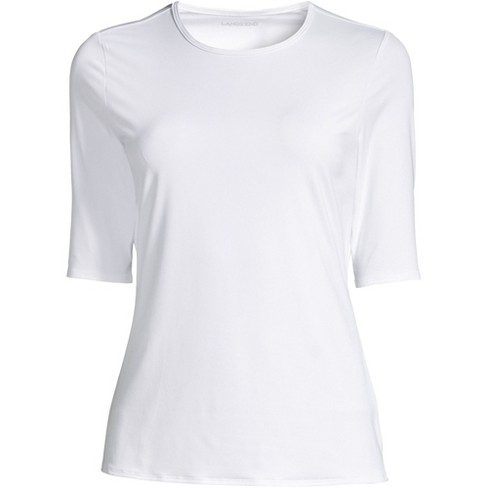 Lands End Women S Petite Crew Neck Elbow Sleeve Rash Guard Upf 50 Sun Protection Modest Swim Tee Xx Small Petite White Target